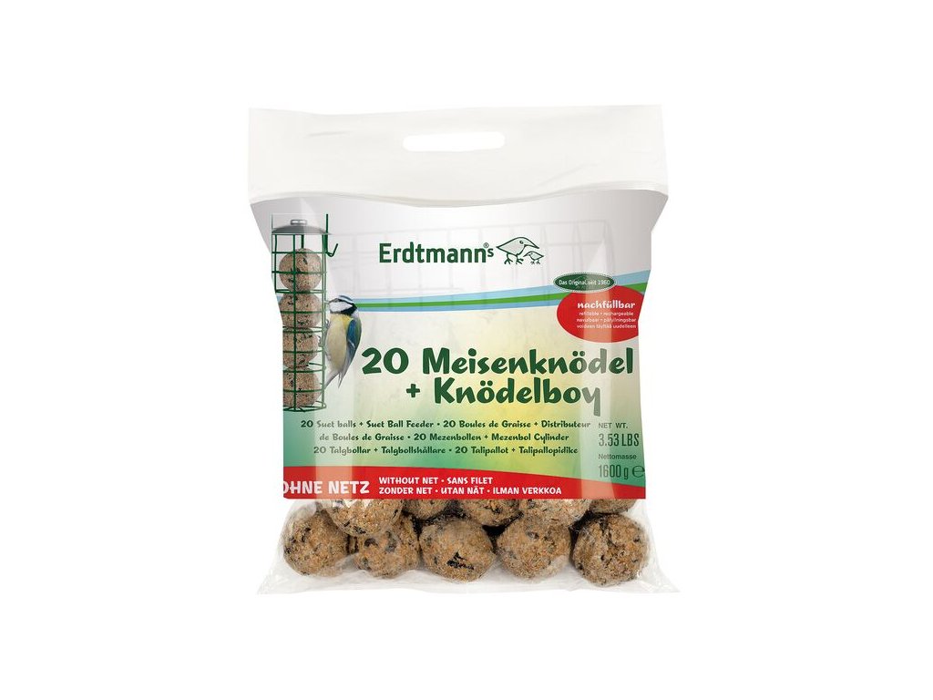 20 ks lojových koulí bez sítěk s kovovým krmítkem Knödelboy Erdtmanns