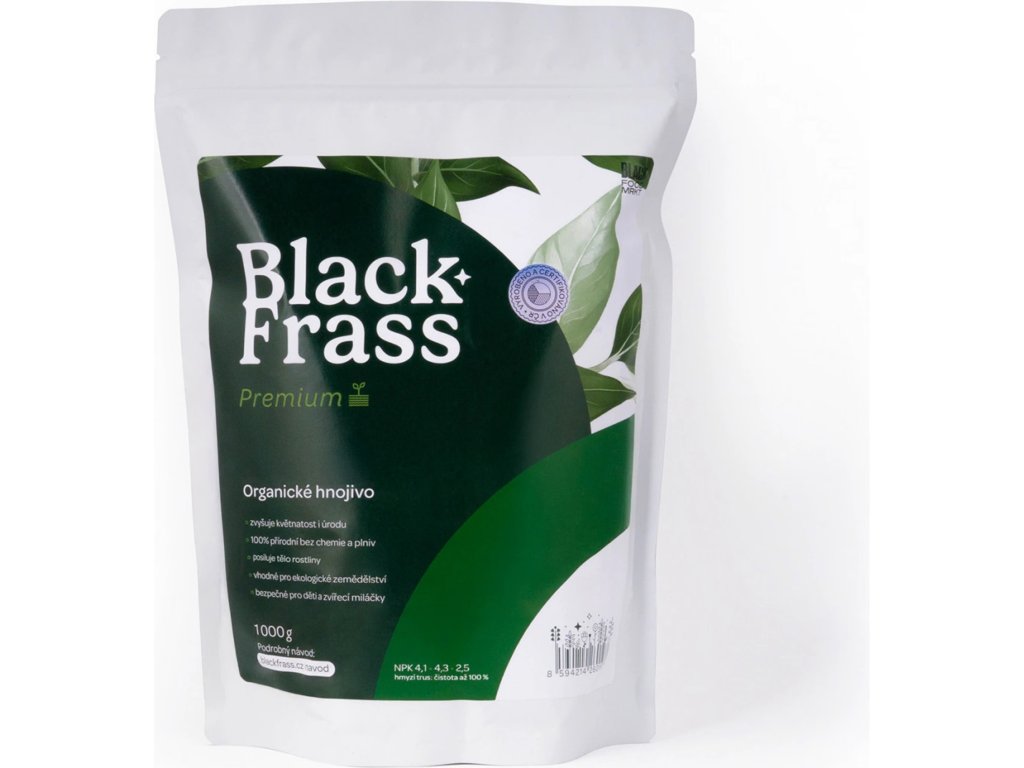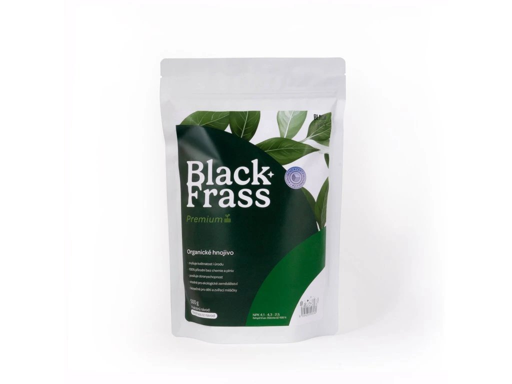 Black Frass je organické a vysoce výkonné hnojivo z trusu hmyzu (potemníka moučného) – hmyzí hnůj. Je vhodné pro ekologické zemědělství, vysoce bezpečné, bez jedů a chemie. Narozdíl od ostatních "hnojů" nezapáchá. Díky svému vyváženému složení brání přehnojení půdy a nespálí vaše rostliny. Navíc obsahuje chitin podporující půdní mikrobiom.