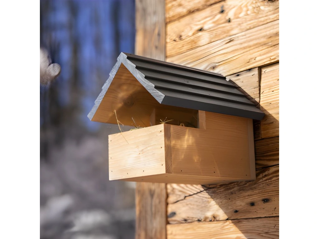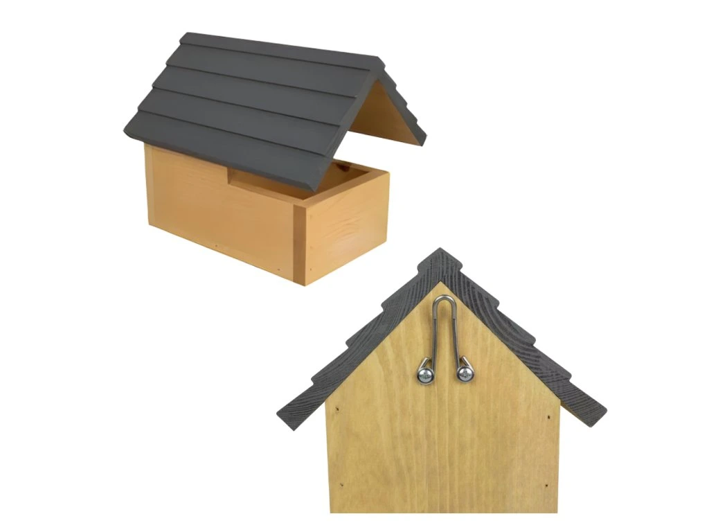 Umístění ptačí budky/polobudky: Na strom nebo zeď ve vhodné výšce (min. 1,5 m) pomocí háčku na zadní straně.