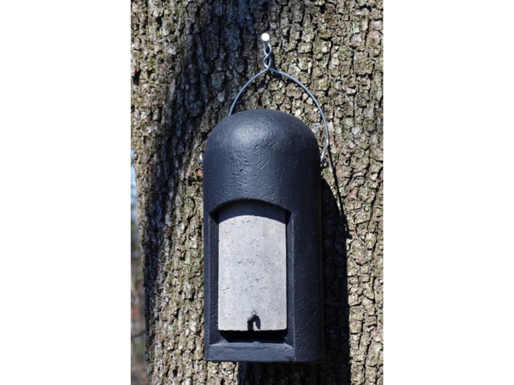 Budka má dva vchody. Přední pro přímý přílet do budky a zadní (v dolní části budky) pro ty netopýry, kteří přistanou na kmeni stromu a do budky šplhají. Součástí výrobku je i speciální hliníkový hřebík, který můžete bez obav zatlouct do kmene stromu.
