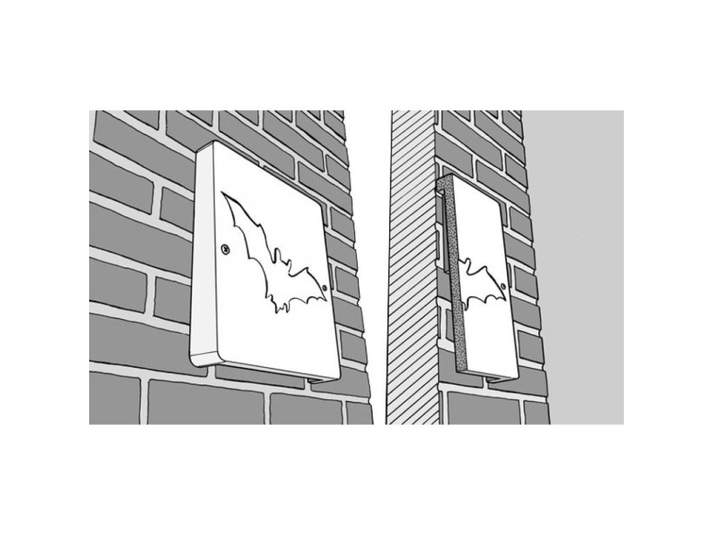 Doporučené umístění: Instalujte v minimální výšce 3 metry tam, kde mají netopýři snadnou příletovou a odletovou cestu. Ideálně teplá JV-JZ strana.