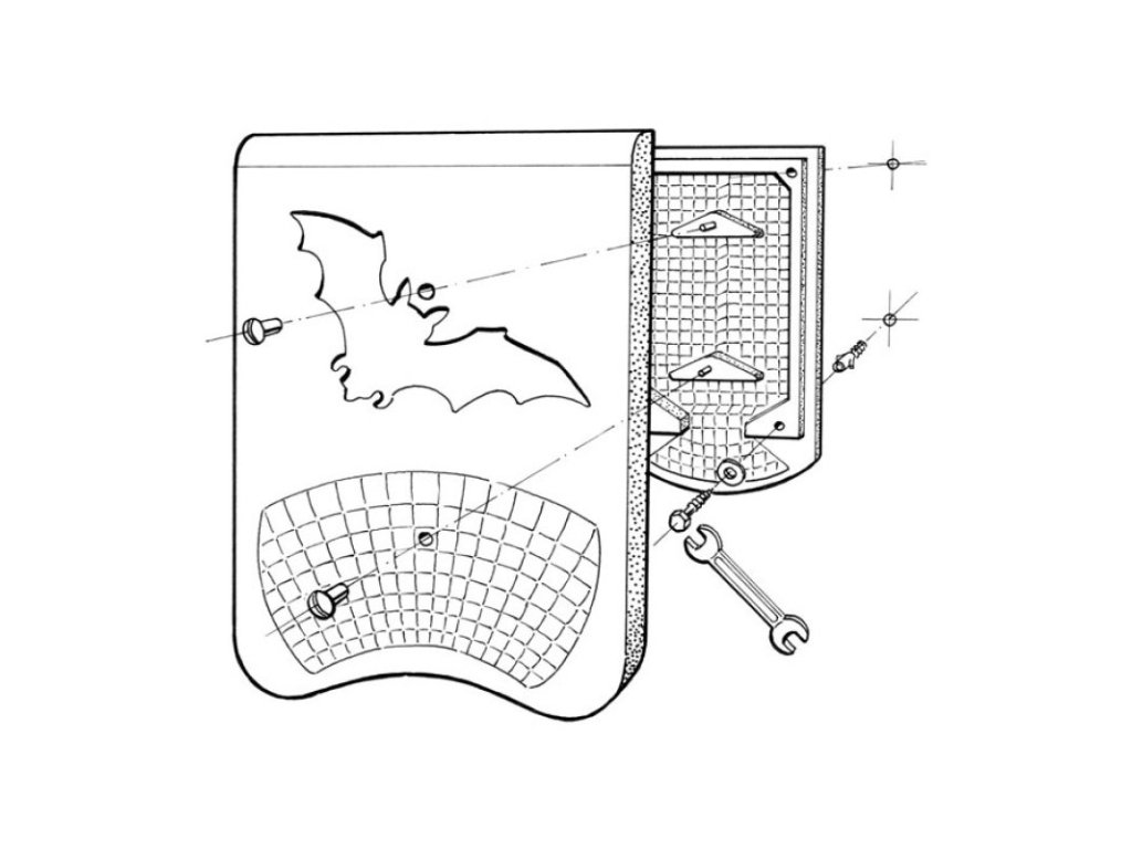Umístění: Instalujte v minimální výšce 3 metry tam, kde mají netopýři snadnou příletovou a odletovou cestu. Ideálně teplá JV-JZ strana.Tuto budku je možné úspěšně použít i na půdách nebo uvnitř starých domů (i hradů), kam mají netopýři nerušený přístup po celý rok.