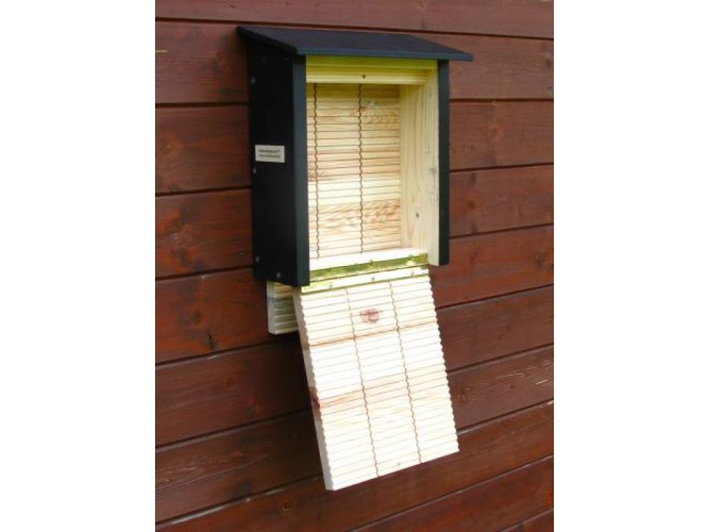 - Díky důmyslné konstrukci a drážkám pro snadný šplh a zavěšení, které je po obou stranách vnitřního prostoru budky i na venkovní přistávací ploše, nabízí tento výrobek pohodlný letní úkryt pro větší množství netopýrů i matky s mláďaty.