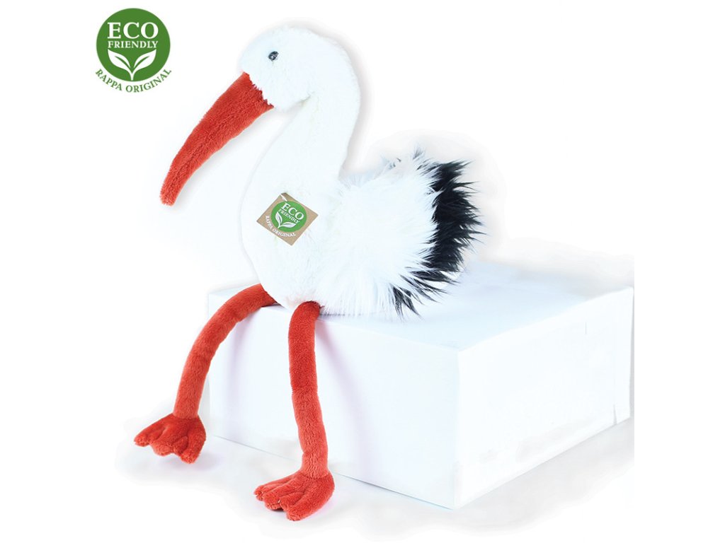 Roztomilý plyšový čáp ve velikosti 39 cm (měřeno včetně nožek) je vyroben z exkluzivní, velmi kvalitní plyše. Výplň plyšové hračky je vyrobena z recyklovaných PET lahví. Tento materiál je zcela bezpečný, na omak nerozeznatelný od standardní výplně a plně atestovaný pro bezpečnost i těch nejmenších.