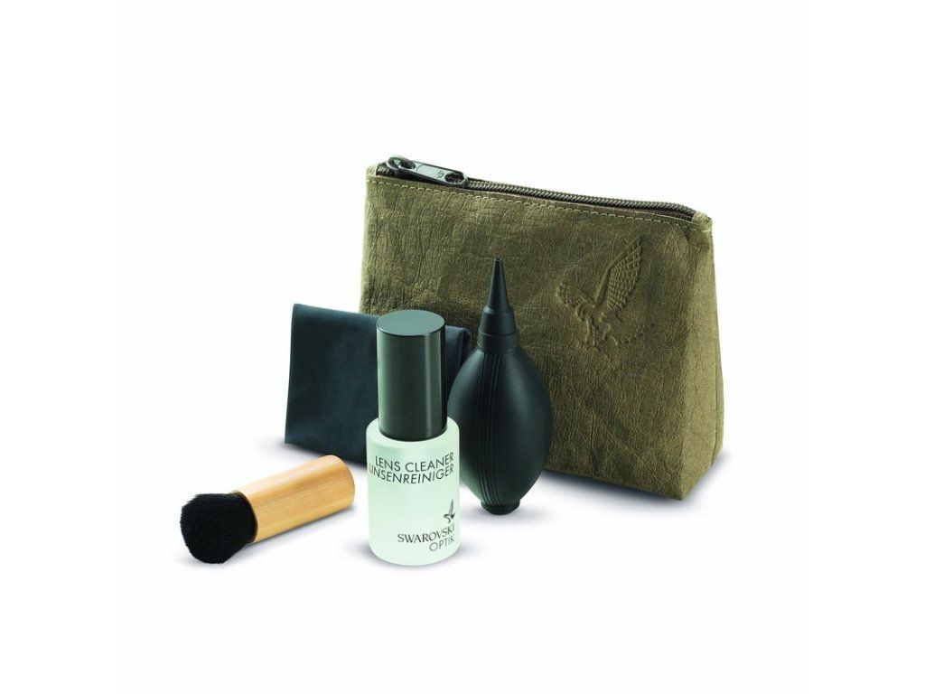 Swarovski Optik sada na čištění optických prvků dalekohledů je uložena v praktickém pouzdru. Umožňuje důkladné a jemné čištění všech optických čoček.