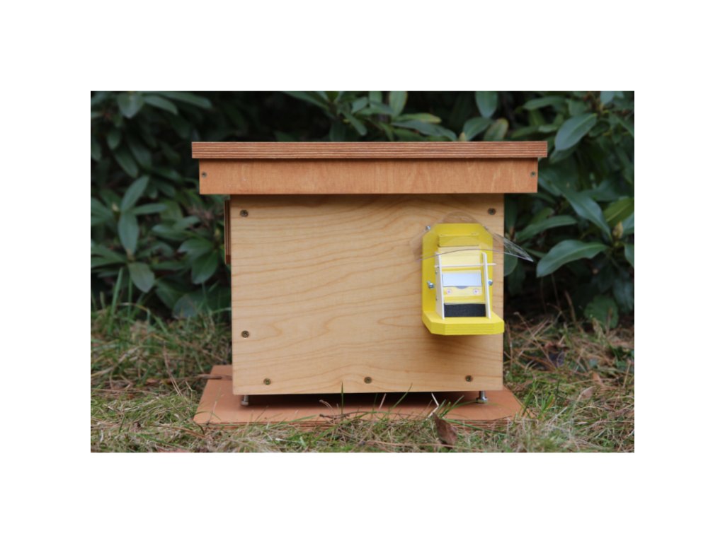 Pozorovací okénko z polykarbonátu funguje i jako bariéra před škůdci, zároveň umožňuje bezpečný pohled do hnízda.