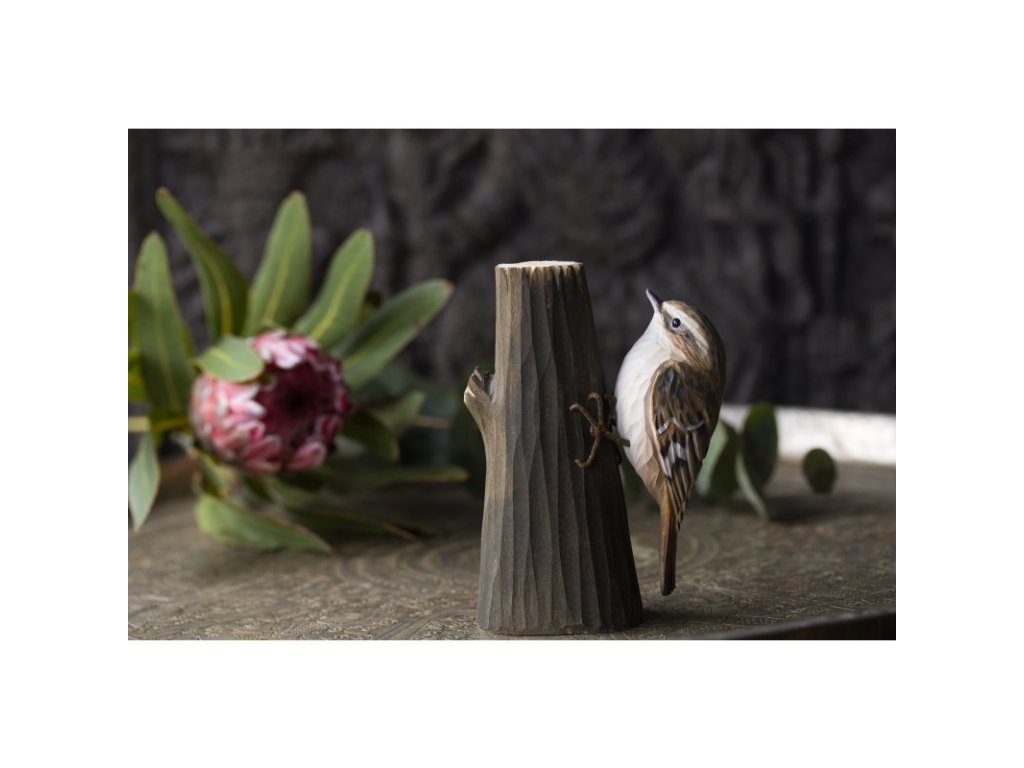 Typický štíhlý, dolů zahnutý zobák a skvrnité tělo tohoto zpěvného ptáka z čeledi šoupálkovitých vytváří hravou a zároveň klasickou dekoraci do interiéru nebo do zimní zahrady, která potěší oko.