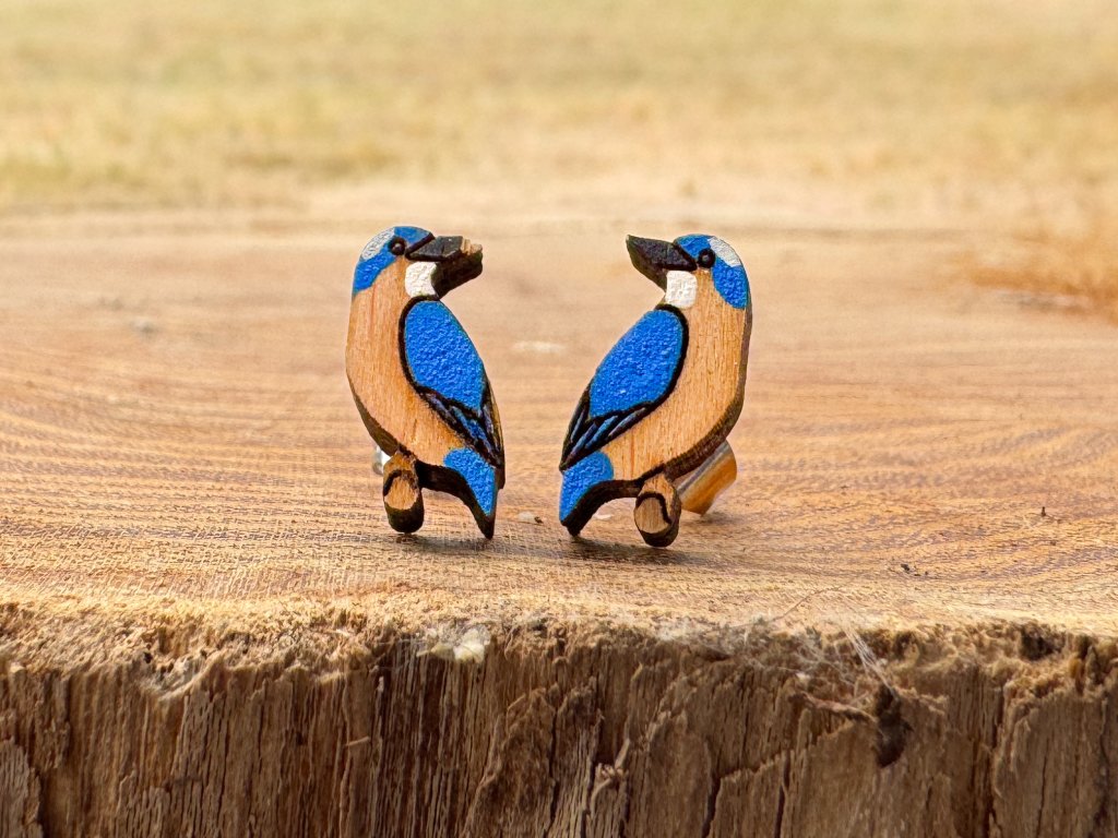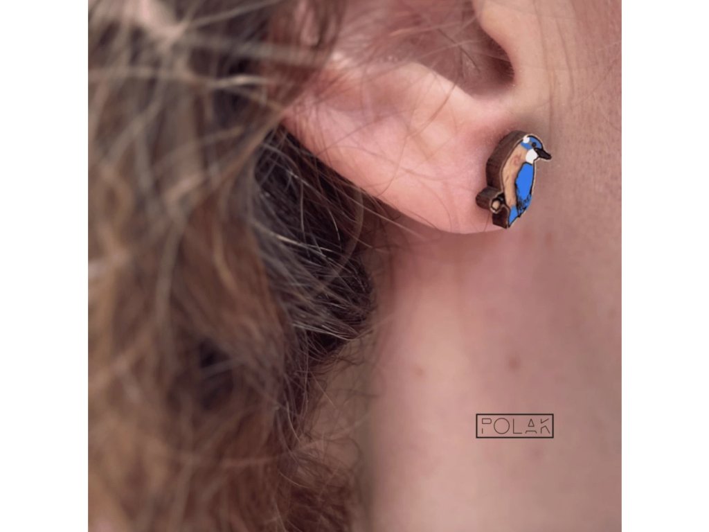 Dřevěné náušnice Ledňáčci