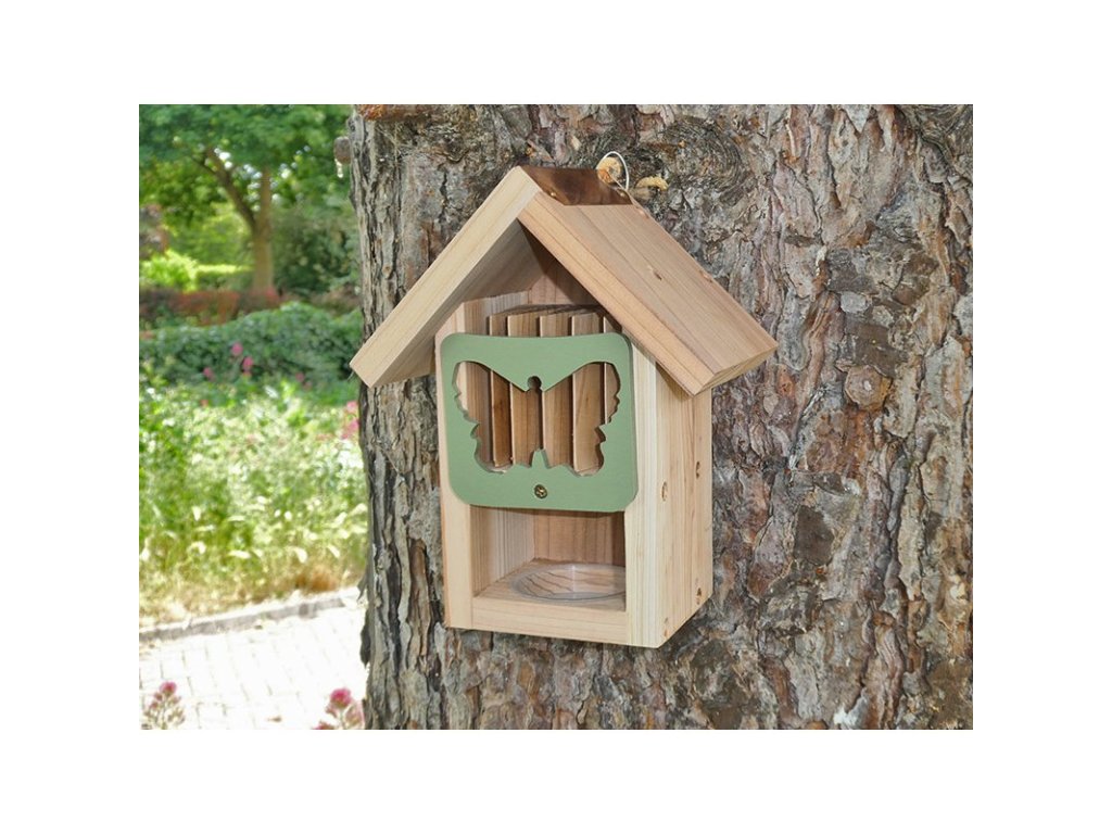 - Kombinuje krmítko a prostor pro odpočinek a zimní hibernaci některých druhů motýlů