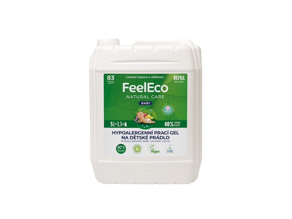 Feel eco prací gel BABY je vhodný na bílé, barevné i tmavé prádlo. Díky svému složení a směsi enzymů je velmi efektivní již při nízkých teplotách praní a složky pro ochranu barev zabezpečí, že prádlo bude vypadat stejně i po opakovaném vyprání.