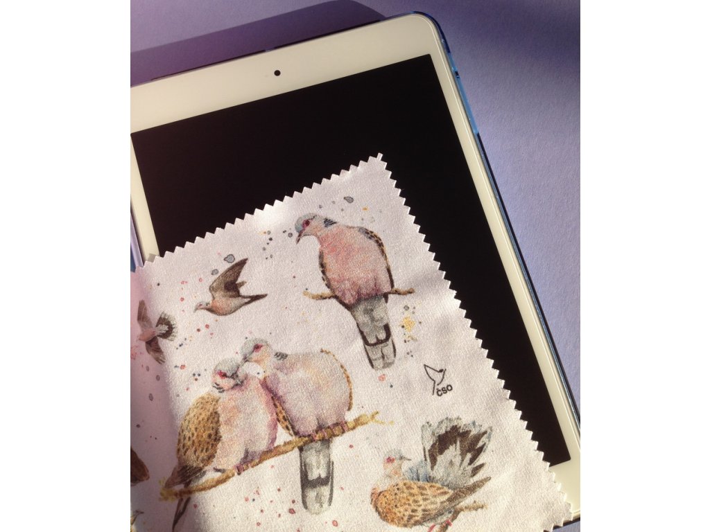 Utěrka z mikrovlákna na dalekohled, brýle či monitor ze speciální testované látky, která nepoškrábe ani jemnou optiku a přesto očistí i nejmenší nečistoty. S motivem hrdličky divoké, ptáka roku 2019. Autorem předlohy je Jan Hošek.