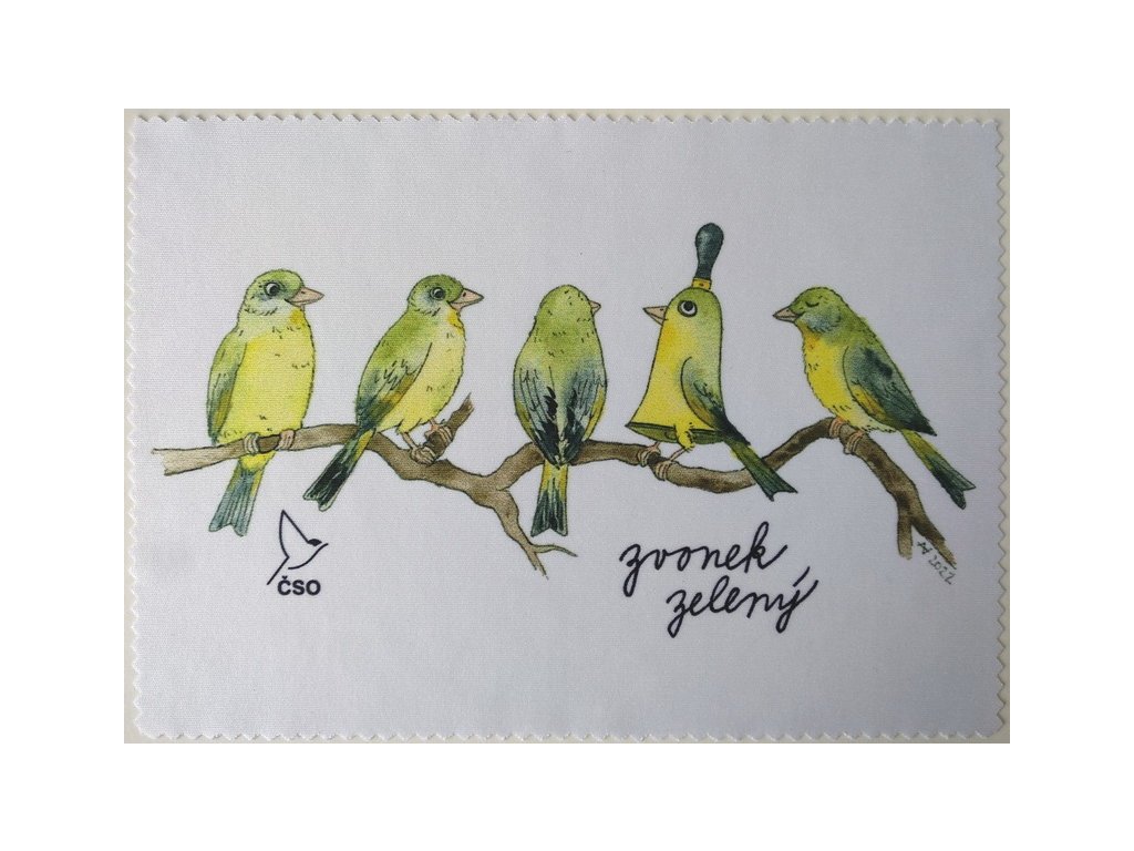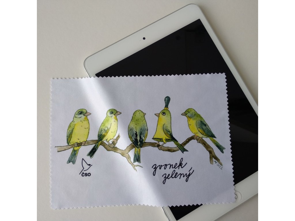 Utěrka z mikrovlákna na dalekohled, brýle či monitor ze speciální testované látky, která nepoškrábe ani jemnou optiku a přesto očistí i nejmenší nečistoty. S motivem zvonka zeleného, ptáka roku 2022. Autorkou předlohy je Anna Vosolsobě.