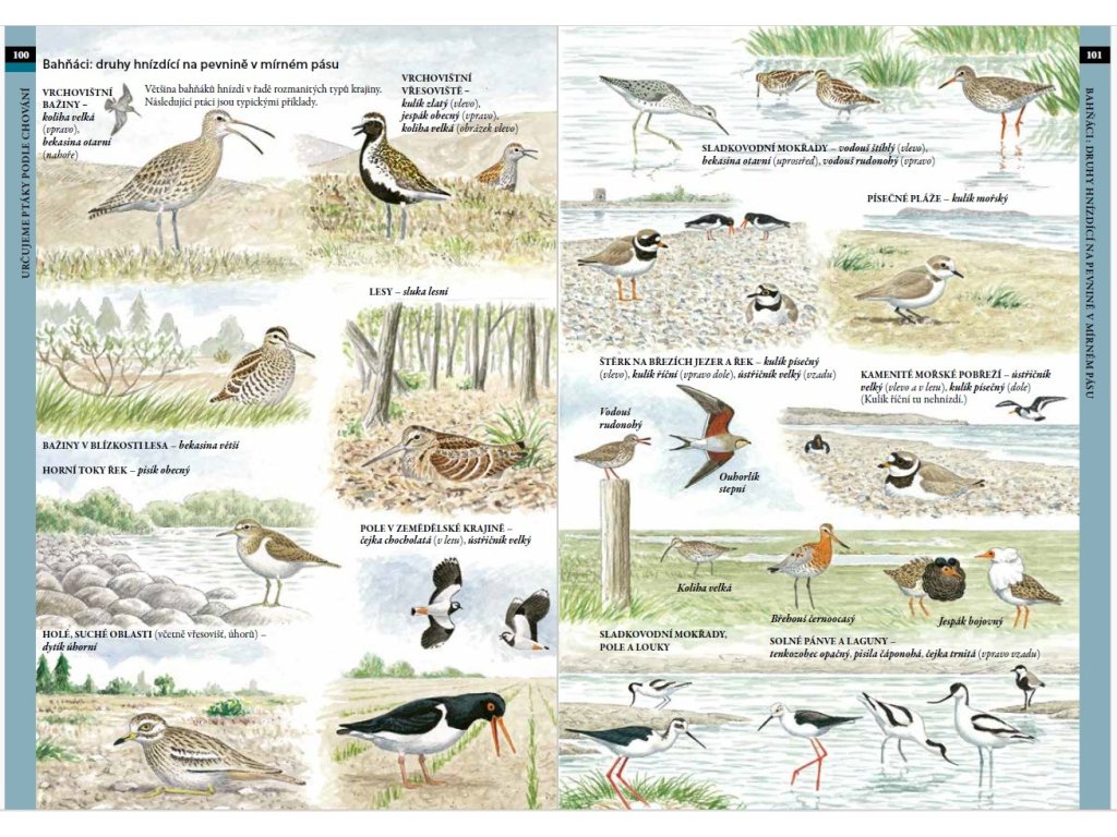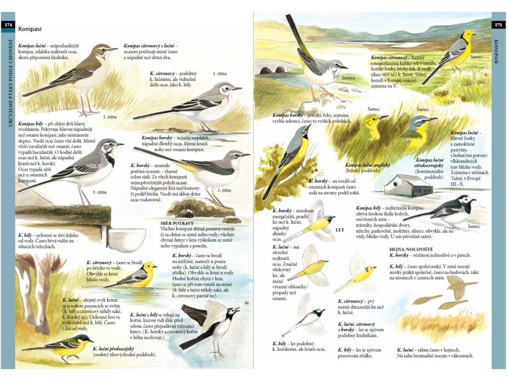 Jistě si také všimnete, že styl této knížky je poněkud odlišný. Určujeme ptáky podle chování je mnohem názornější než jiné terénní příručky – ilustrace zaplňují každou stránku a jsou opatřeny jen stručnými popisky. Nenajdete tu žádný souvislý text ani mapky rozšíření. Nezmiňujeme se ani o hlasech, které ptáci vydávají. Informace jsme skutečně omezili, abychom se soustředili na to, o čem se domníváme, že je jinde popsáno jen zřídka.