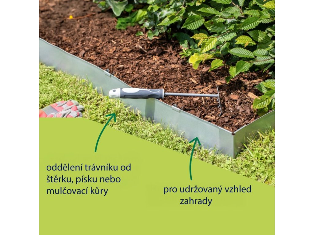 - Flexibilní páska z pozinkovaného plechu snadno vytvoří estetické hranice ve vaší zahradě