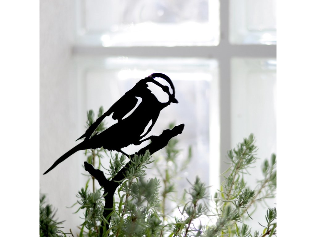 Zápichy do květináčů nebo na zahradu s motivem sýkory parukářky, modřinky nebo babky. Jsou vyrobené z pevného plechu a nalakované odolnou barvou.