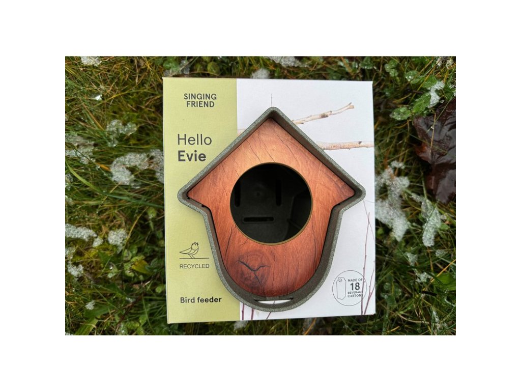 Krmítko Evie je vyrobené ze stejného materiálu jako krmítka Sam, Anna nebo Johan. Jde o recyklovaný plast, který byl původně součástí nápojových kartonů. Obaly na nápoje Tetra Pak jsou velmi praktické, ale recyklace je trochu oříšek, protože se musí oddělit od sebe všechny tři vrstvy (papírová, hliníková a plastová). Pokud se tak ale stane, každá surovina má poté ještě dobré využití. A z plastu pak může vzniknout lisováním i takovéto pěkné krmítko, které je navíc ještě dále recyklovatelné.