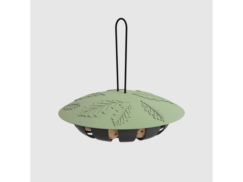 Unikátní krmítko s promyšleným designem. Lojové koule jsou uloženy horizontálně v kruhu a překryté stříškou s roztomilým motivem dubových listů. Krmítko lze zavěsit pomocí přiložené šňůrky na strom nebo jinou konstrukci, lze ho ale také napíchnout na tyč (není součástí balení). Krmítko má uprostřed otvor na tyč a vy ho můžete umístit třeba doprostřed zahrady, kde budou mít ptáci dobrý přehled o okolí a budou chráněni před predátory.