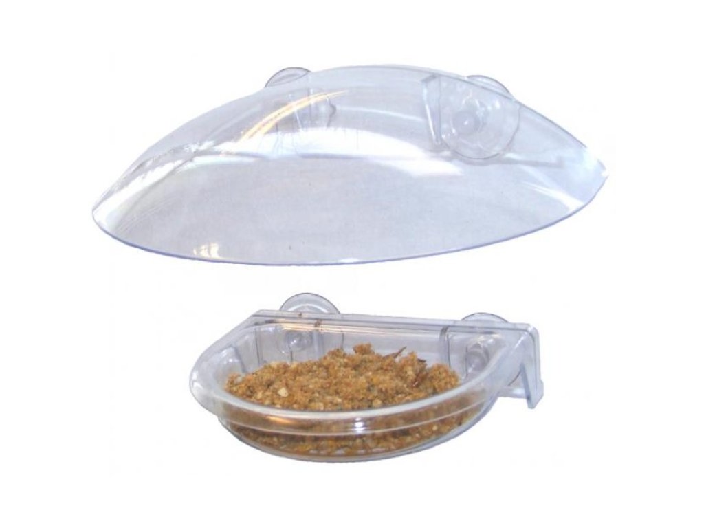 - Stříška chrání obsah krmítka na okně (krmení v misce) před deštěm