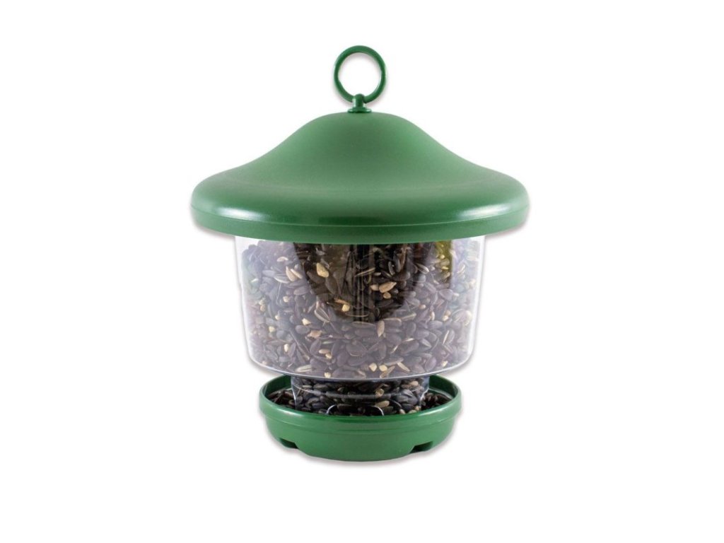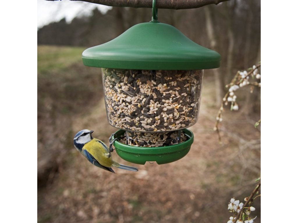 Toto závěsné krmítko je vyrobeno z kvalitního silného plastu odolného vůči UV záření, což zajišťuje dlouhou životnost výrobku. Je vhodné pro všechny drobné zahradní ptáky, kteří létají na krmítka. Krmítko se snadno čistí a doplňuje skrz střechu, kterou lze otočením uvolnit. Do průhledného zásobníku se vejde až 1 litr semínek. Díky tomu, že ptáci v krmení nestojí, tak v něm ani nekálí, a zamezuje se tak přenos ptačích chorob skrz trus. Ptáci se uchytí za okraj spodní misky, do které propadá krmení ze zásobníku. I tak doporučujeme provádět komplexní hygienu krmítka cca jednou za 14 dní. Stačí dobře omýt mýdlovou vodou a nechat vysušit. Více o péči o krmítka se můžete dočíst na našem blogu zde.