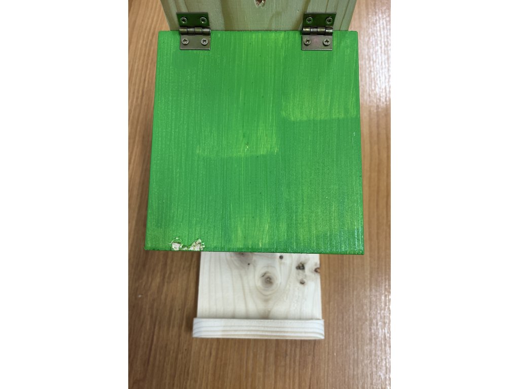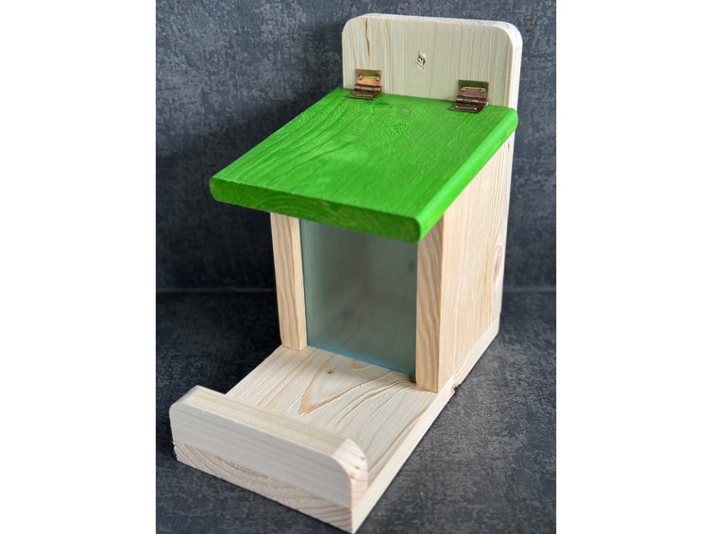 - Krmítko není, z ekologických důvodů, kromě střechy nijak ošetřeno. Případný nátěr ekologickou, vodou ředitelnou barvou je však možný a prodlouží životnost krmítka.