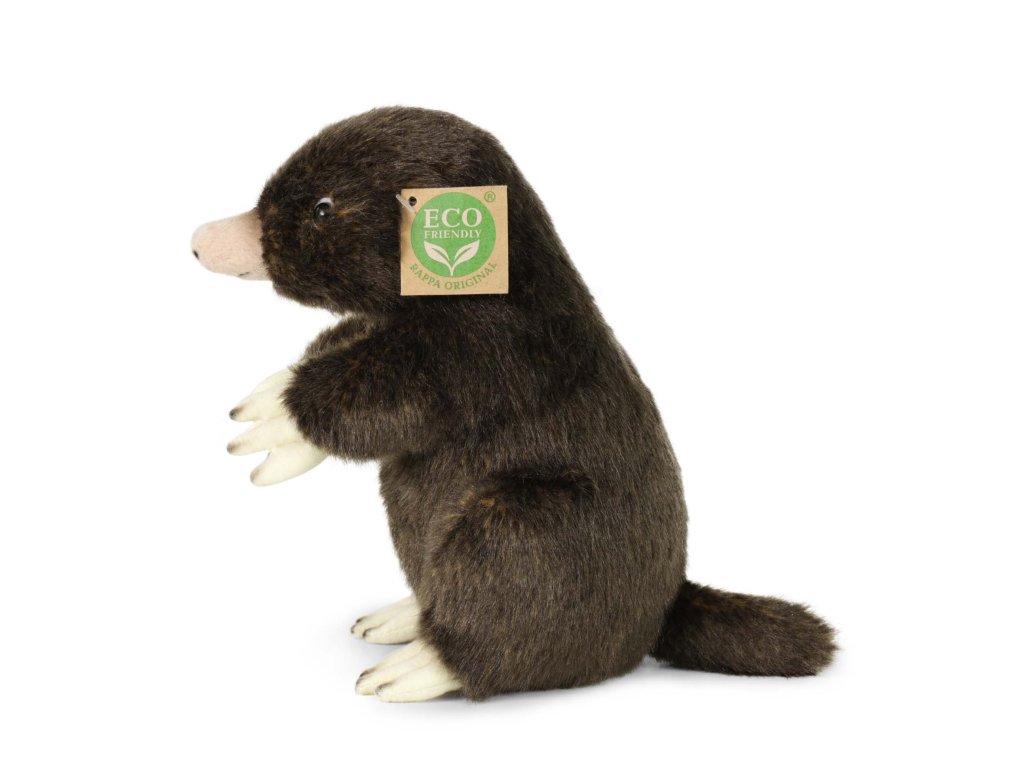 Krtek je malé zvířátko žijící v podzemních norách, jejich tělo je krátké a silné, s krátkýma nohama a mohutnými drápy na předních končetinách. Náš roztomilý plyšový krtek ve velikosti 21 cm je vyroben z měkkého a jemného materiálu, který je příjemný na dotek a je tak součástí exkluzivní kolekce plyšových hraček RAPPA. Plyšový krtek je vhodný jako dárek pro děti i dospělé. Co to vlastně ECO-FRIENDLY znamená? Výplň plyšové hračky je vyrobena z recyklovaných PET lahví. Tento materiál je zcela bezpečný, na omak nerozeznatelný od standardní výplně a plně atestovaný pro bezpečnost i těch nejmenších. Rozhodli jsme se jít zelenou cestou co nejméně zatěžující životní prostředí- cestou ECO-FRIENDLY.