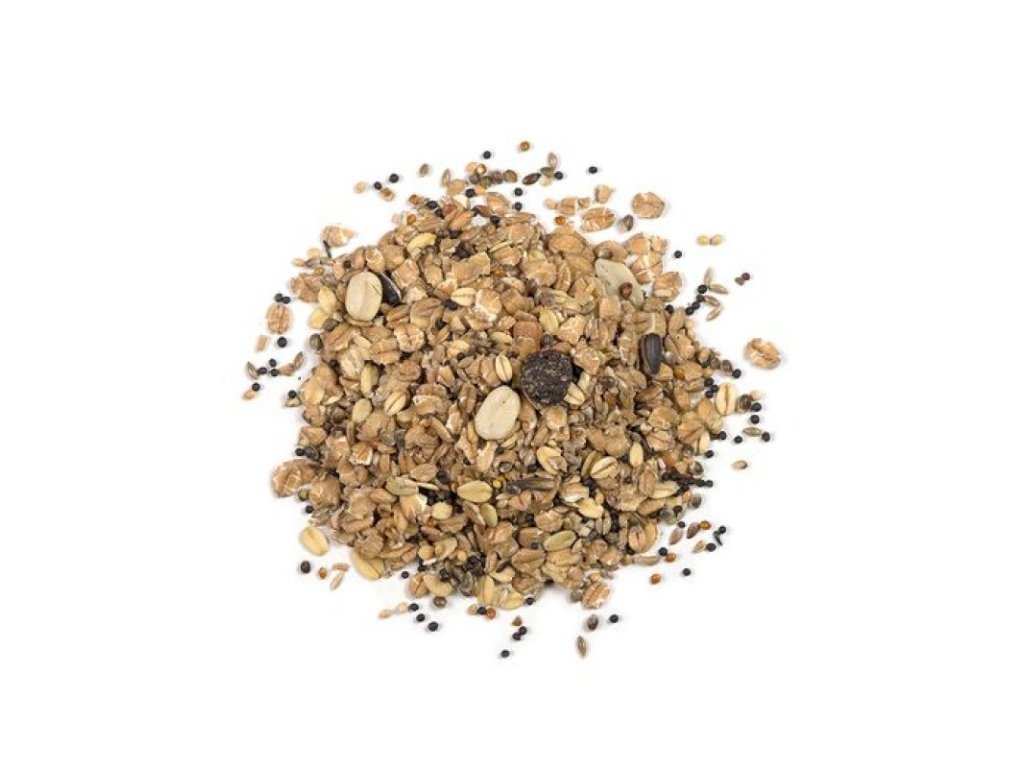 - Obsahuje jemné obilné vločky, kvalitní semena, arašídy a sušené ovoce