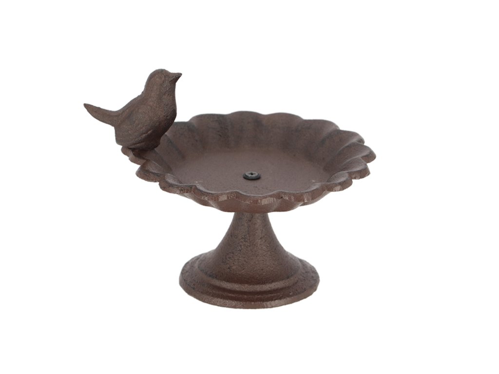 Litinové pítko pro ptáky na podstavci s jedním ptáčkem Esschert Design