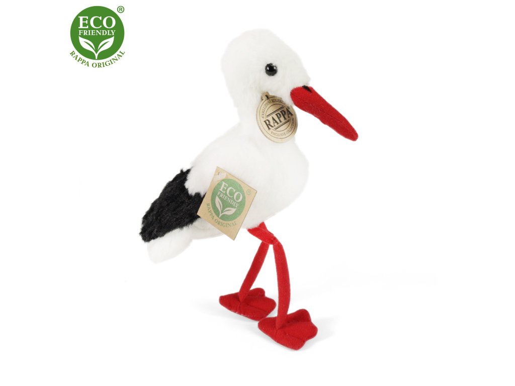 Roztomilý plyšový čáp ve velikosti 15 cm (měřeno včetně nožek) je vyroben z exkluzivní, velmi kvalitní plyše. Výplň plyšové hračky je vyrobena z recyklovaných PET lahví. Tento materiál je zcela bezpečný, na omak nerozeznatelný od standardní výplně a plně atestovaný pro bezpečnost i těch nejmenších.