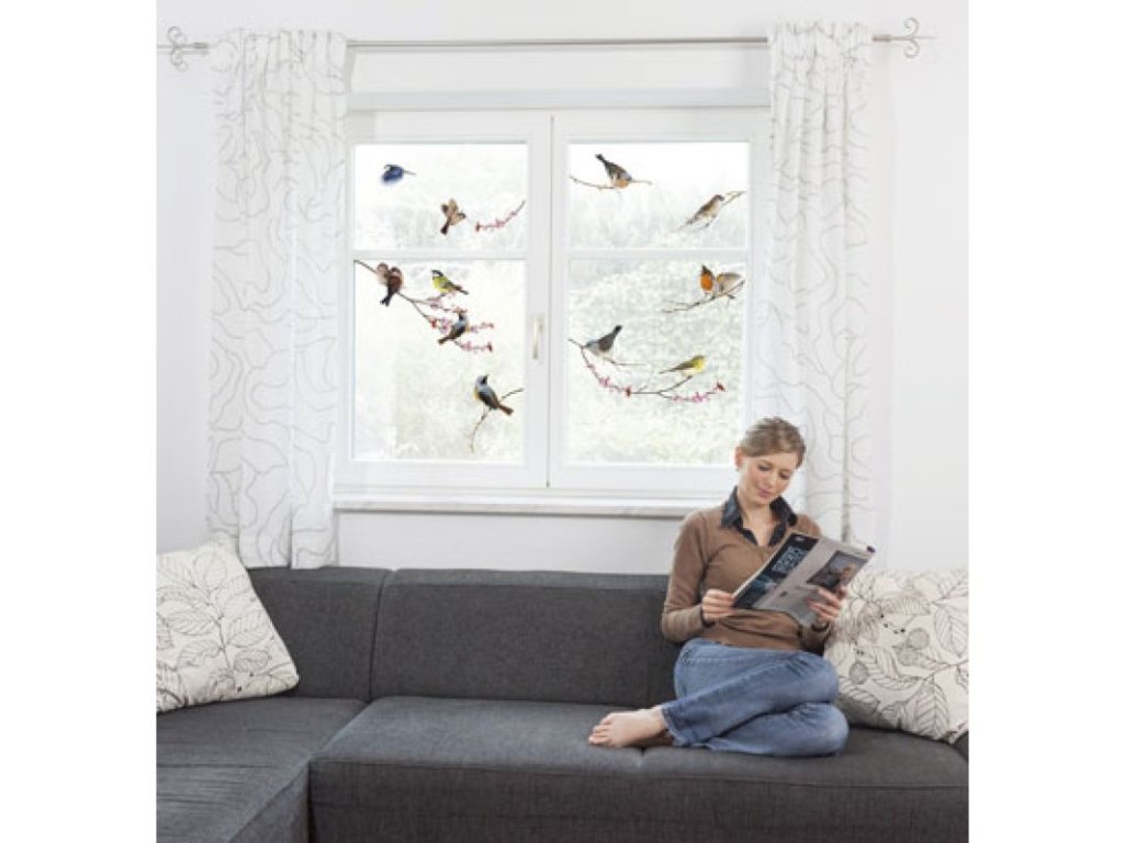 Ozdobné samolepky ptáčků na okno