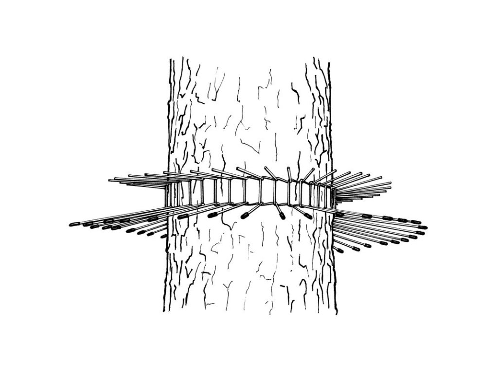 Jednotlivé dílky z ohýbaného drátu do sebe zapadají jako řetěz a vy si můžete vytvořit kratší nebo delší pás, který upevníte na kmen stromu. Jedno balení je možné použít i na více tenčích stromů nebo umístit dva pásy nad sebou. Pro delší obvod na silnější kmen lze snadno prodloužit zakoupením dalšího balení. V balení jsou i ochranné plastové „čepičky“ na delší konce drátů, které chrání okolí před zraněním.