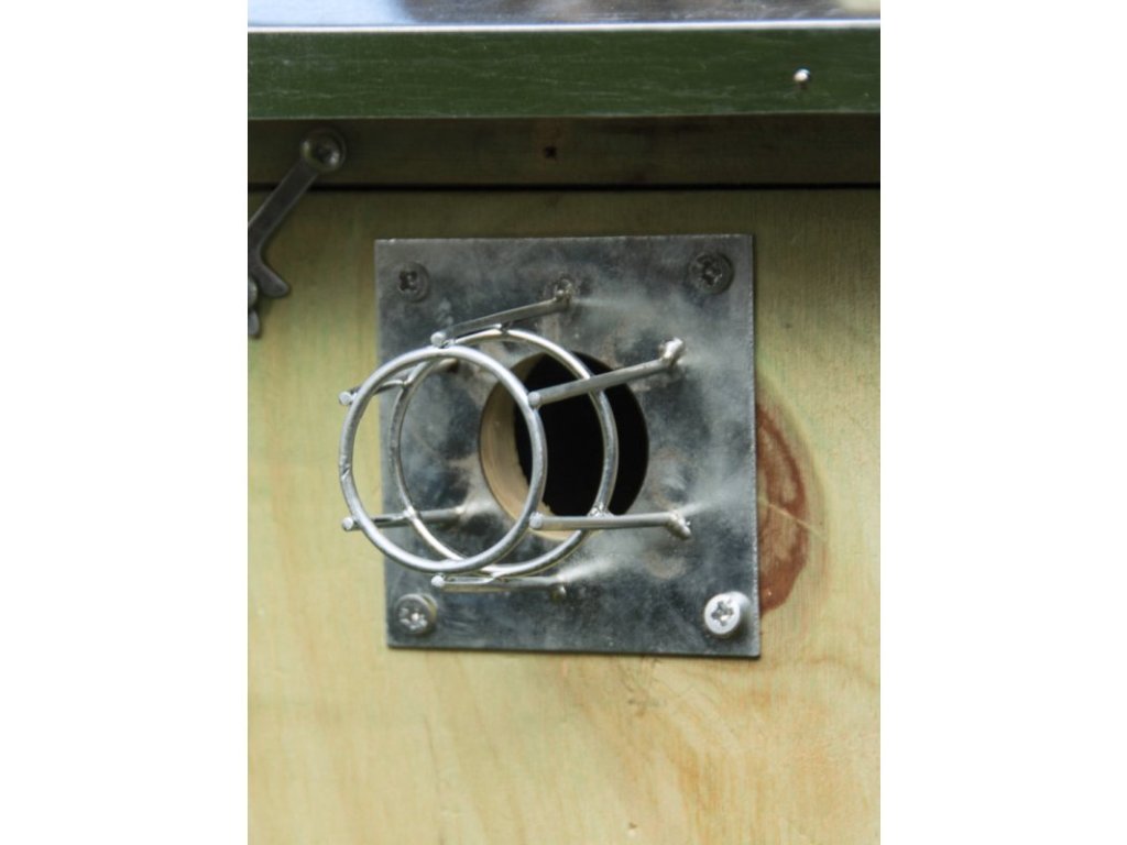 Vajíčka zahradních ptáků a ptačí mláďata mohou být v budce v nebezpečí, protože někteří predátoři mohou skrz vletový otvor mláďata napadnout a hnízdo vybrat. Tato kovová přídavná konstrukce tomu zabrání a ochrání mladé ptáky před predátory, jako jsou kočky, kuny nebo větší ptáci. Pevná kovová konstrukce navíc brání ptačím predátorům zvětšit vletový otvor, k čemuž někdy dochází u nechráněných budek vyrobených ze dřeva.