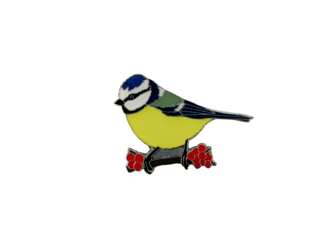 Odznáček - sýkora modřinka na větvičce