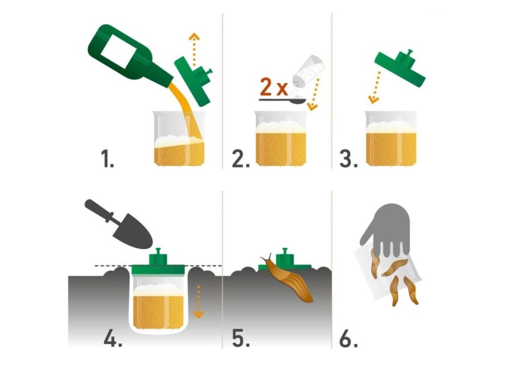 Použití produktu je velmi snadné: Naplňte nádobu do poloviny pivem a zavřete víko. Umístěte ji do záhonu tak, aby víko bylo v rovině s terénem. Vůně piva přiláká slimáky, kteří vlezou dovnitř nádoby, ale už se nedostanou ven. V případě potřeby past znovu naplňte.