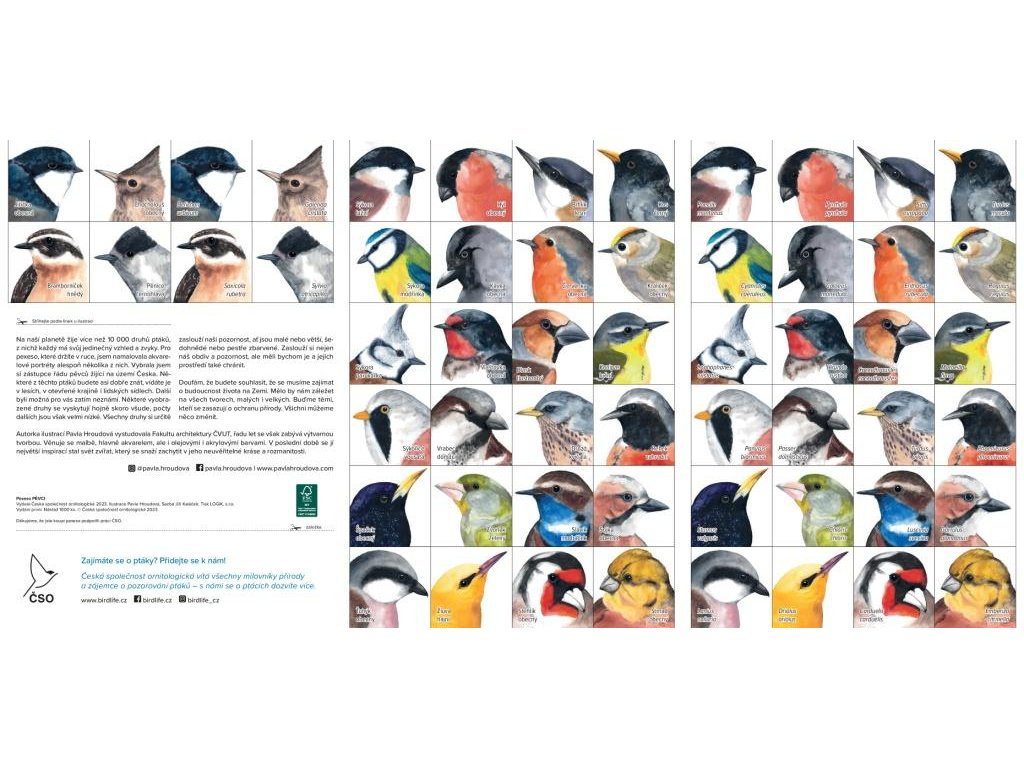 Klasické papírové pexeso obsahuje 32 stejných dvojic - na jedné kartičce je české a na druhé vědecké jméno příslušného druhu. Rozměr kartičky cca 5x5 cm, rozměr nerozstříhaného poskládaného pexesa A4.