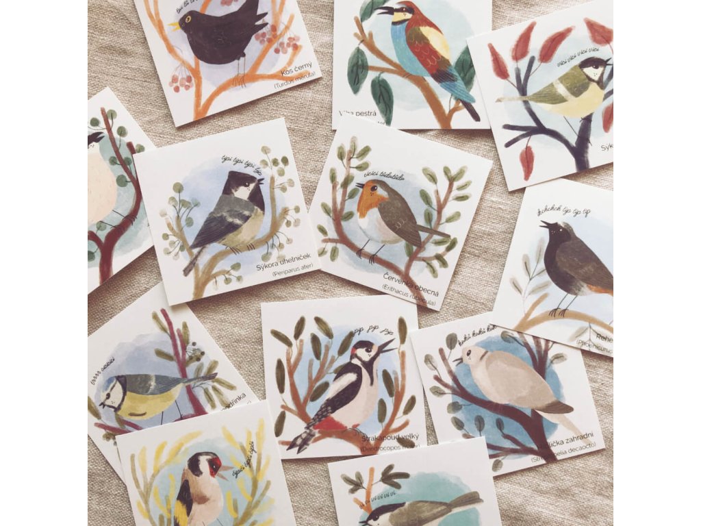 Kartičky jsou plné ptáčků a jako malý bonus u každého druhu je vždy zápis zpěvu, jak jej zaznamenal jeden hudebník. Ten vtip je v tom, že každý by to zaznamenal trošku nebo hodně jinak. Ptáčci jsou stylizovaní a každý sedí na jiné větvičce.