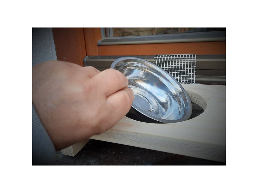 Na zadní straně pítka/krmítka je sklolaminátová síťka, kterou jednoduše přivřete mezi okenní rám a okno a zajistíte tak výrobek před spadnutím při silném větru. Pokud žijete na velmi větrném místě, doporučujeme ještě samotnou misku, která je samotná velmi lehká, zajistit skobičkou (není součástí výrobku).