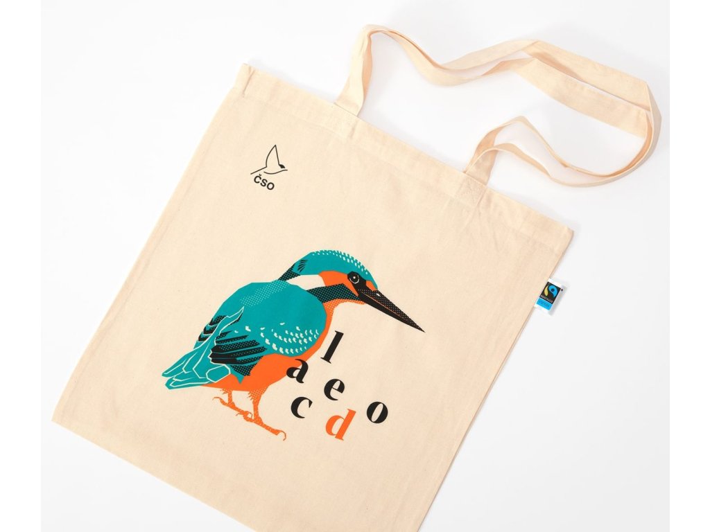 Bavlněná taška s originálním motivem ledňáčka. Taška je vyrobena ze 100% biobavlny s certifikací GOTS a FairTrade.