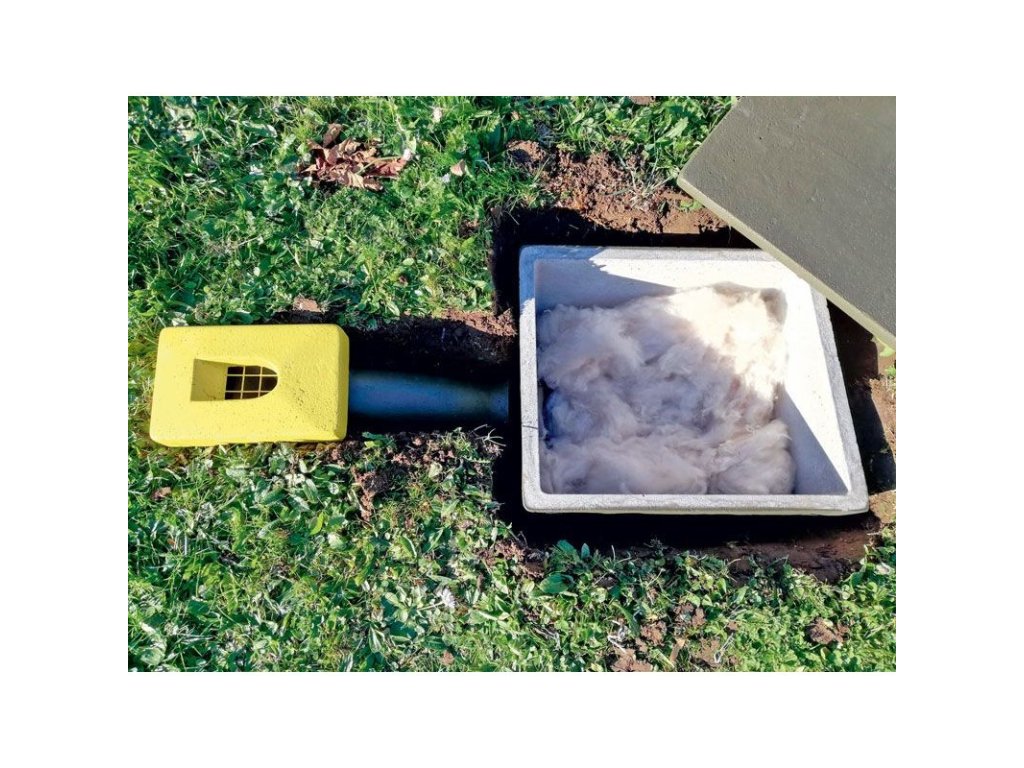 Samozřejmě je možné jej umístit i na zem a zasypat hromádkou hlíny. Výhodou podzemního čmelínu je to, že jej můžeme umístit i na slunnou lokalitu, protože se nepřehřívá.