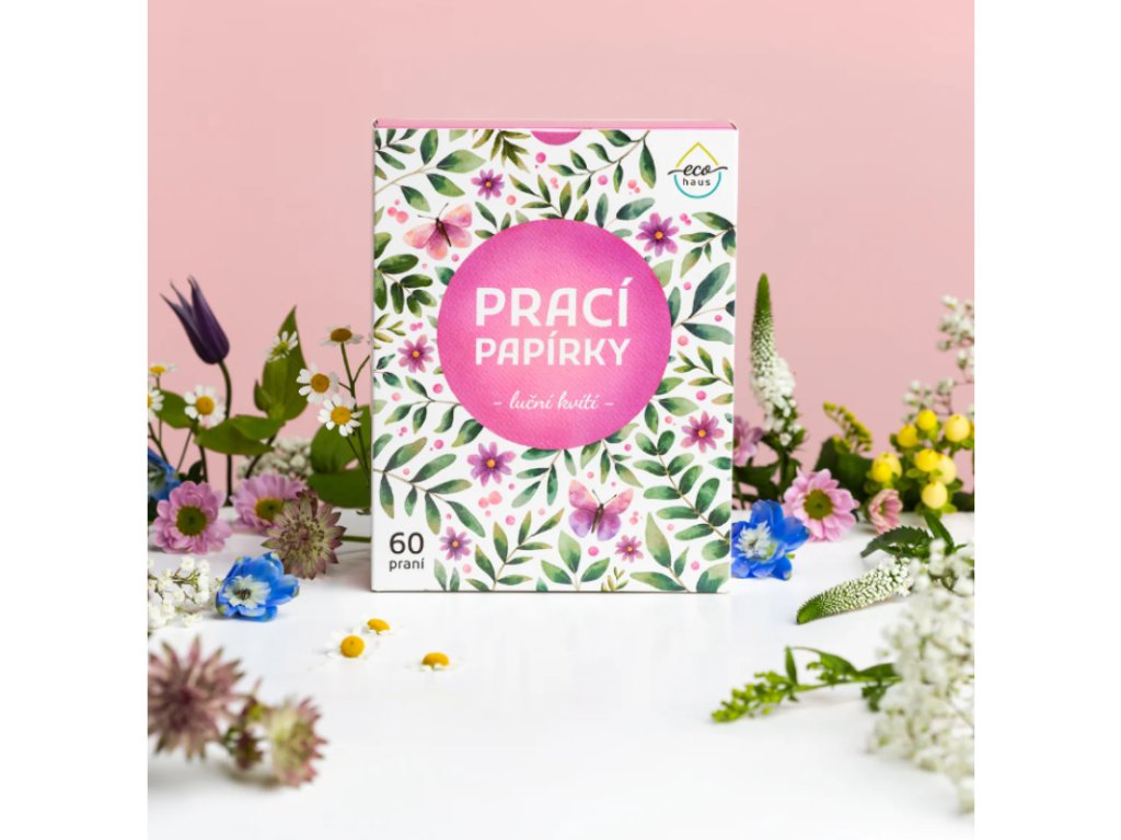 Tento prací papírek vám domů vnese svěží vůni lučního kvítí, takže si budete připadat jako na prázdninách u babičky. Papírek je vhodný pro citlivou i dětskou pokožku a šetrný k materiálům, jako je vlna či hedvábí. Jeden prací papírek je lehký jako pírko, váží pouhé 3 gramy. Jeho složení je dostatečné pro vyprání celé pračky prádla, neboť obsahuje jen nezbytné látky pro praní bez nadbytečných výplňových materiálů, které zvyšují objem bez přidané hodnoty.