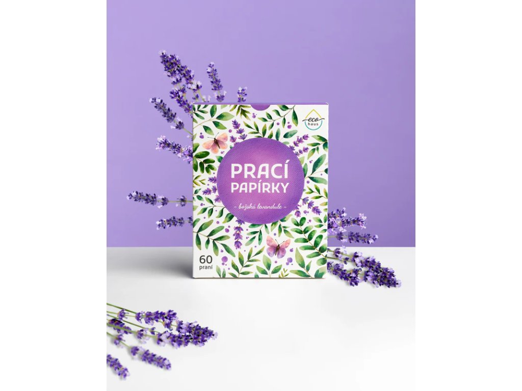 Prací papírek EcoHaus je multifunkční, hodí se pro praní v pračce i ruční praní, pro čištění koberců nebo čalounění, a můžete si z něho udělat také čisticí sprej. Uklidňující vůně levandule se sladkými tóny vanilky a medu vás na chvíli přenese do Provence - země slunce a věčného léta. Papírek je vhodný pro citlivou i dětskou pokožku a šetrný k materiálům, jako je vlna či hedvábí. Jeden prací papírek je lehký jako pírko, váží pouhé 3 gramy. Jeho složení je dostatečné pro vyprání celé pračky prádla, neboť obsahuje jen nezbytné látky pro praní bez nadbytečných výplňových materiálů, které zvyšují objem bez přidané hodnoty.