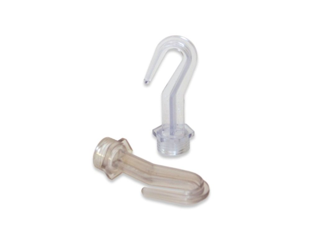 Tento hák lze přišroubovat ke krmítkům se spodním závitem z naší nabídky. Je vyrobený z transparentního silného plastu, který je odolný proti UV záření.