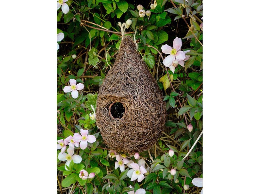 Tato ptačí budka může sloužit jako úkryt, ale ptáci v ní mohou i zahnízdit. Je vyrobená z materiálu „brushwood“, což je něco jako naše proutí, tento materiál je ale odolnější a trvanlivější než běžné proutí. Budka má tvar kapky, což imituje přírodní dutiny. Dobře splývá s okolím, můžete ji zakomponovat i do živého plotu nebo stěny porostlé popínavkou. Součástí výrobku je drát na zavěšení, takže lze budku pověsit i na zeď.