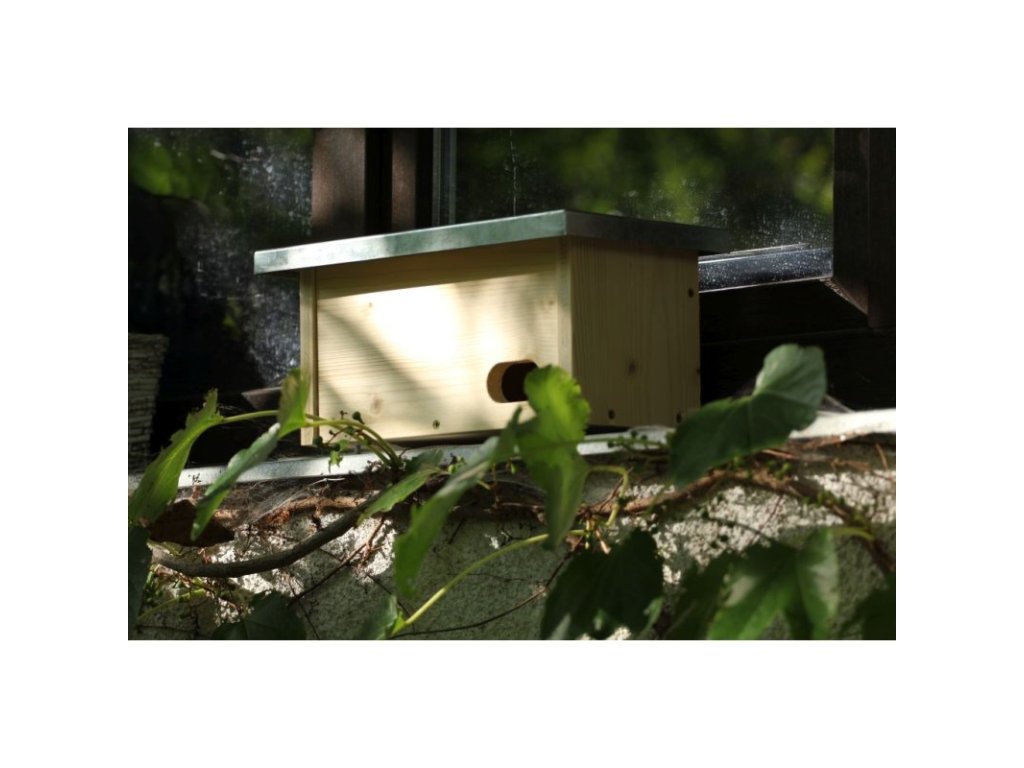 - Budka je konstruována pro bezpečné umístění na okenní parapet bez nutnosti vrtání do zdi