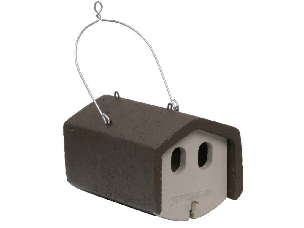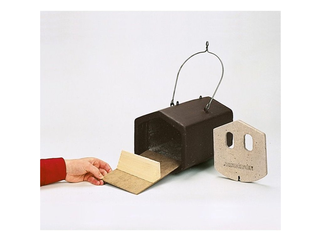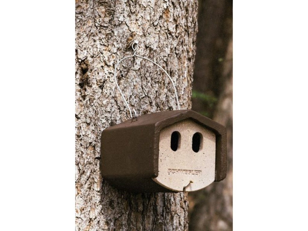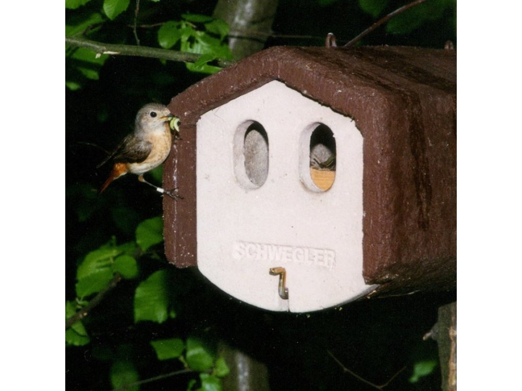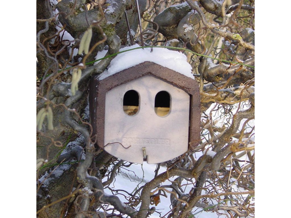 - Budka má dva oválné vchody a dřevěnou vložku (viz foto) a zajišťuje dokonalou ochranu ptáčat.