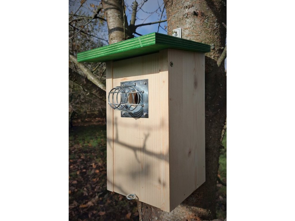 - Díky použitému materiálu je budka výrazně trvanlivější než běžné dřevěné budky