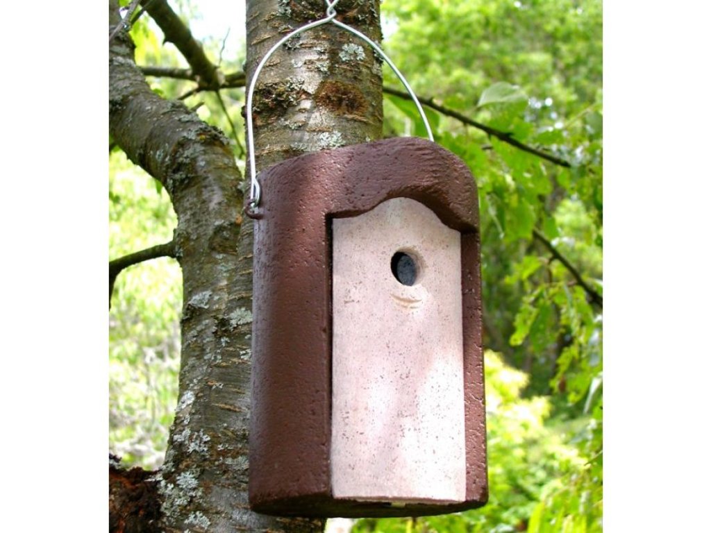 - Kulatý tvar budky ideálně napodobuje stromové dutiny a zvyšuje pravděpodobnost osídlení budky