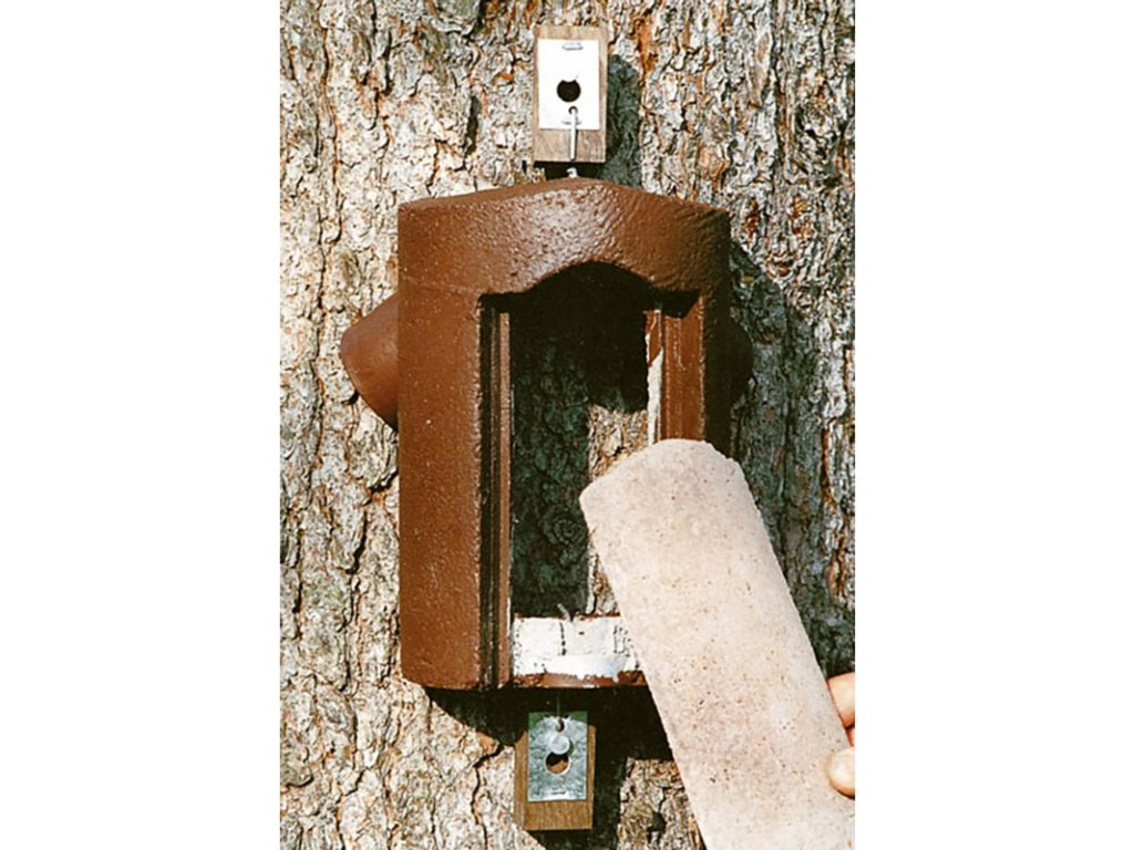 - Tato ptačí budka je přizpůsobena životu a potřebám šoupálků, kteří se pohybují kolem kmene, a proto vyhledávají dutiny těsně přiléhající ke kmeni.