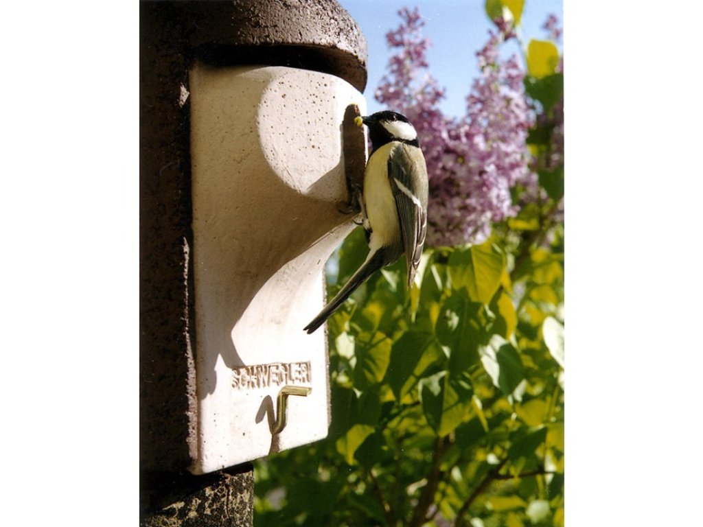 - Oválný vletový otvor (3,0 x 4,5 cm) umožňuje lepší přístup světla do budky. Ptáci proto nemusí dělat hnízdo příliš vysoké a tím znemožňují predátorům ulovit ptáčata.