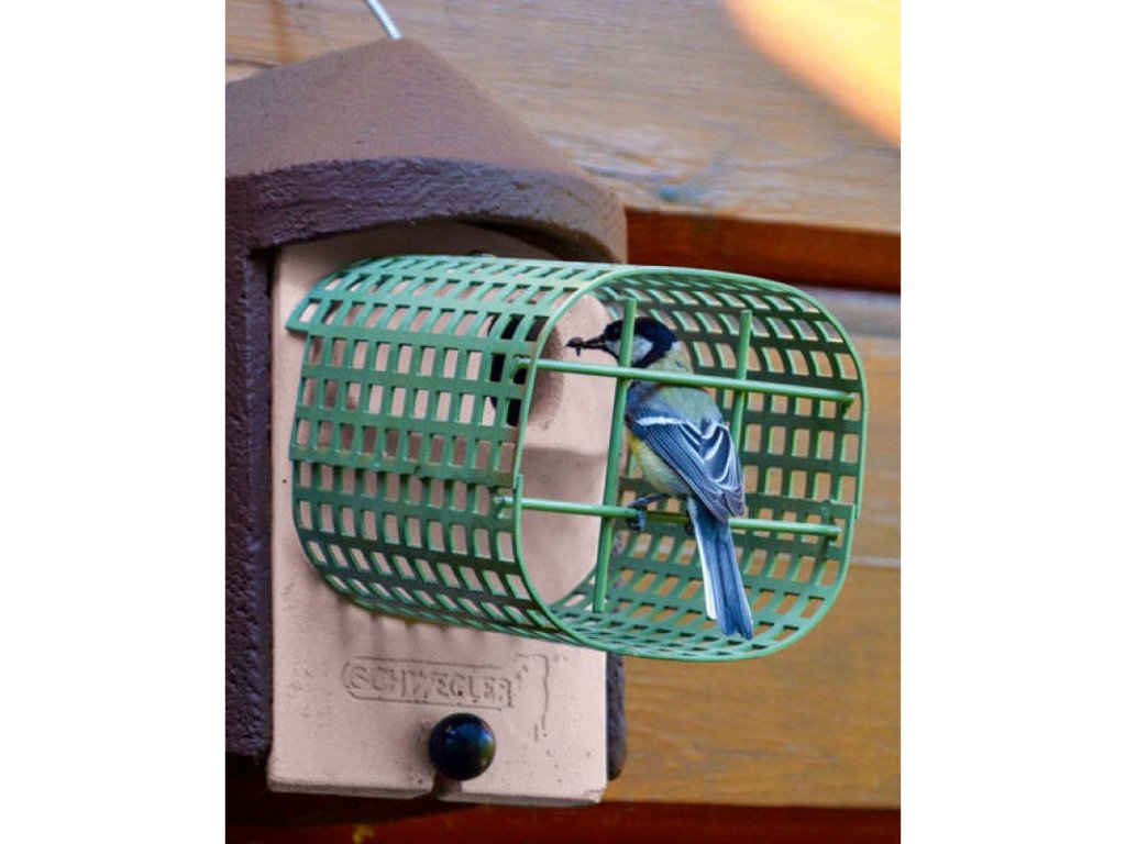 Někteří predátoři jsou tak šikovní, že dokážou malá ptáčata z budky vytáhnout i neporušeným vletovým otvorem. I proto ornitologové vymýšlejí nové způsoby, jak ptáky v budce ochránit. Tato budka je kombinací budky se zvýšenou ochranou 2GR a předsazené kovové konstrukce, která vytváří dodatečný ochranný prostor před vletovým otvorem.