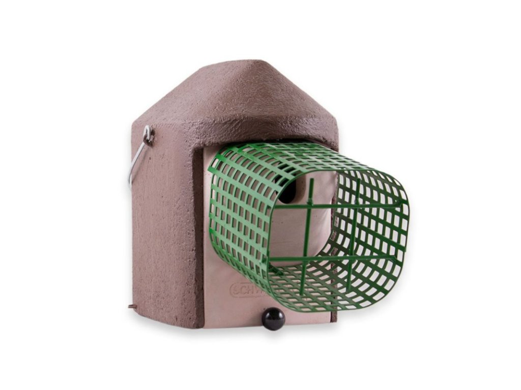 - Materiál: dřevocement Schwegler, ochranná klec je vyrobena z práškovaného děrovaného plechu a oceli